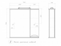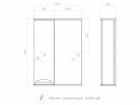 50 см / Без подсветки / Правая / Белый / Зеркальный