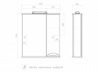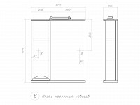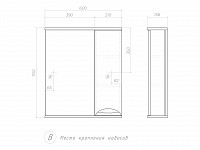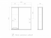 60 см / Без подсветки / Правая / Белый / Зеркальный