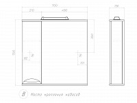 70 см / С подсветкой / Правая / Белый / Зеркальный