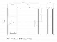 60 см / С подсветкой / Правая / Белый / Зеркальный