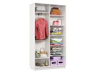 Лаконичный корпус с гладкими фасадами делает его универсальным решением для спальни, гардеробной или прихожей. Внутри предусмотрены отделения для хранения одежды на вешалках, а также полки для белья и домашнего текстиля. Одна из створок оснащена большим зеркалом, которое визуально расширяет пространство и добавляет удобства в повседневной жизни.