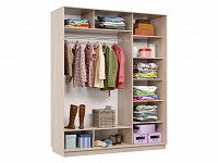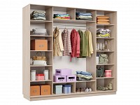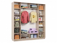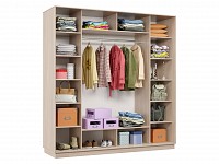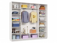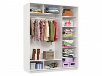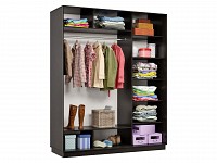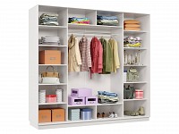 Функциональное внутреннее наполнение позволяет распределить вещи по категориям: для одежды из деликатных тканей предусмотрена продольная либо евроштанга, а для белья, футболок и джинсов — удобные полки. Зеркальные двери добавляют комнате визуального объема и помогают оценить подобранный образ.