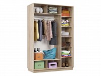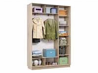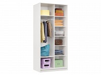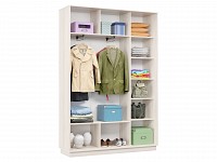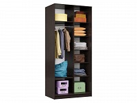 Продуманное наполнение представлено большим количеством полок и штангой, поэтому здесь найдется место для всего необходимого — от платьев и костюмов из деликатных тканей до важных мелочей.