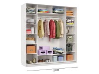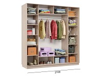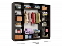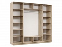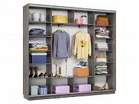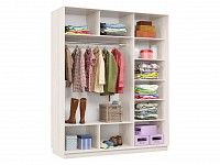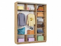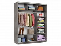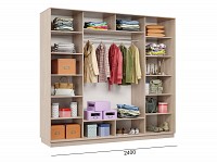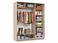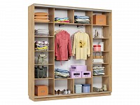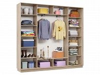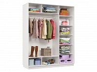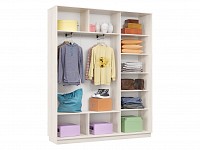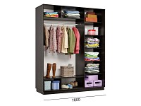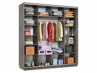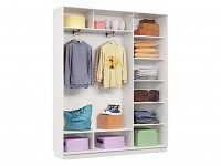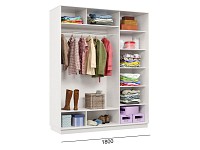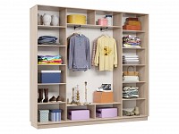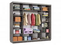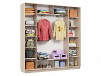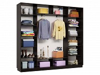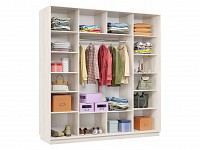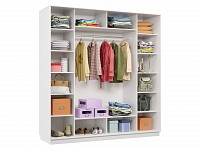 Благодаря штангам можно аккуратно развесить одежду любой длины. Для трикотажа, обуви и аксессуаров предусмотрено множество полок по бокам и в центральной части модели.