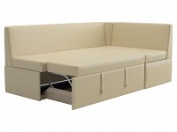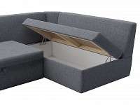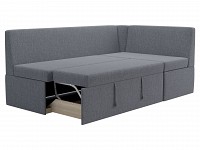 Диван можно установить в небольшой комнате или студии, обеспечив место не только для отдыха, но и сна. Под сиденьем находится вместительный ящик для хранения.