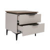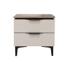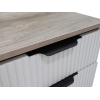 Модель с выдвижными ящиками идеально подходит для хранения мелочей, которые обычно нужны перед сном или после пробуждения. Фасады с вертикальными линиями и контрастными ручками придают мебели элегантный облик.